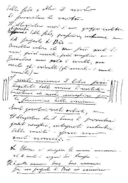 Quest’ultima frase non solo è sottolineata nel manoscritto originale, ma porta pure tre linee sul lato sinistro e cinque su quello destro.