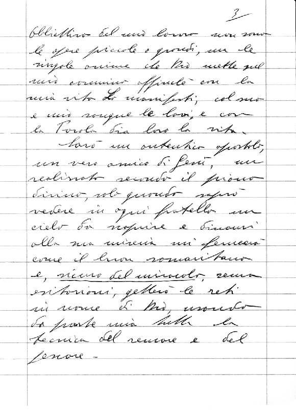 3 Obiettivo del mio lavoro non sono le opere, piccole o grandi, ma le singole anime che Dio mette sul mio cammino, affinché con la mia vita Lo manifesti, col suo e mio sangue le lavi e con la Parola dia loro la vita.