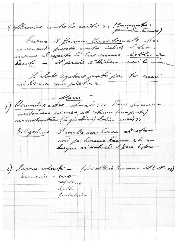 Sono schemi sintetici e incompleti di meditazioni, dettate forse ai primi Assistenti dell’Istituto San Gaetano.