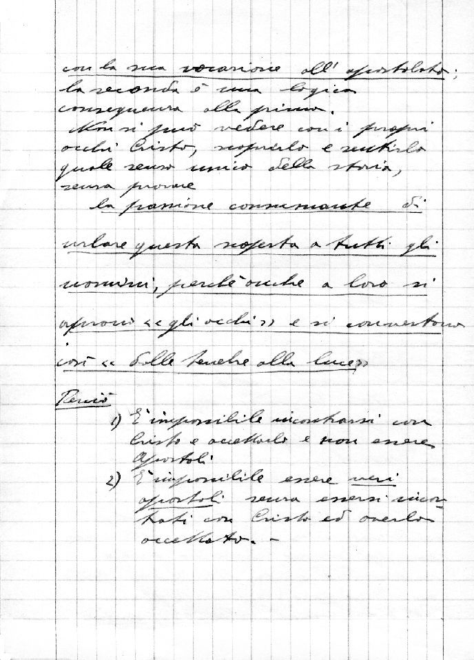 Perciò: 1) È impossibile incontrarsi con Cristo ed accettarlo e non essere apostoli. 2) È impossibile essere veri apostoli senza essersi incontrati con Cristo ed averlo accettato.