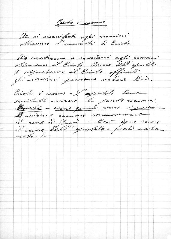 1 Cristo è uomo Dio si manifesta agli uomini attraverso l’umanità di Cristo. Dio continua a rivelarsi agli uomini attraverso il Cristo. Dovere dell’apostolo è riprodurre il Cristo affinché gli uomini possano vedere Dio. Cristo è uomo. L’apostolo deve anzitutto curare la parte umana: bontà, cuore grande verso i poveri. Le miserie umane commuovevano il cuore di Gesù. Così deve essere il cuore dell’apostolo (vedi nostre note).GESÙ
