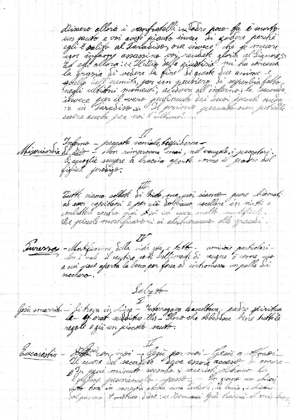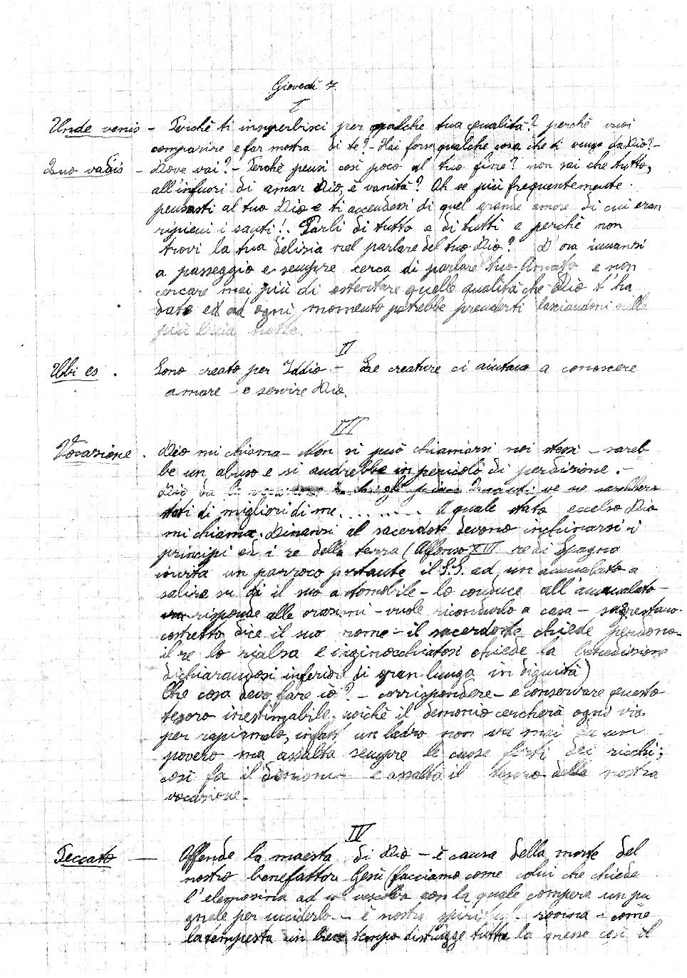 Sono schemi di meditazioni per tre giorni di esercizi spirituali, con quattro meditazioni al giorno, che il chierico Ottorino tenne forse a un gruppo di ragazzi del seminarietto della cattedrale.