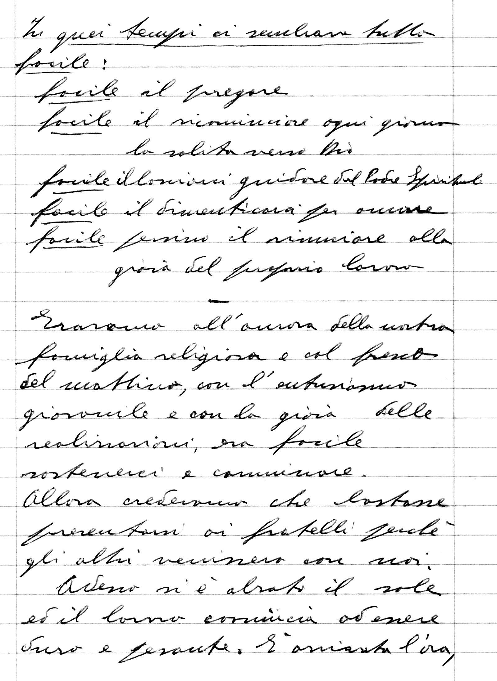 Nel testo originale sono sottolineate le parole “quei tempi ci sembrava tutto facile” e poi l’aggettivo “facile” per cinque volte di seguito.