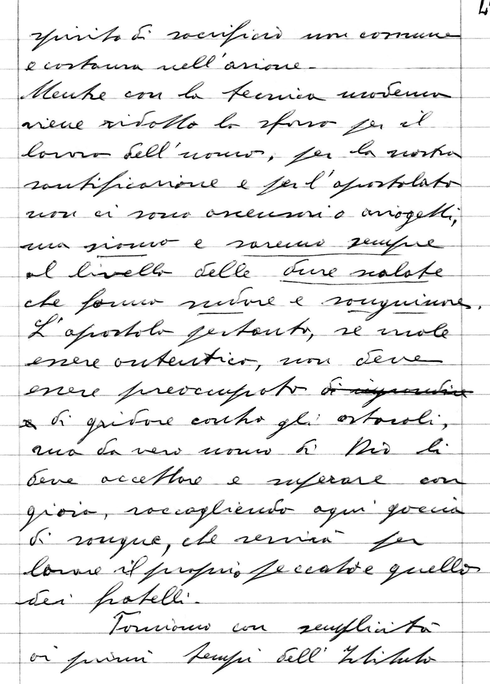 Le parole “servizio gioioso dei giovani” sono sottolineate nel testo originale