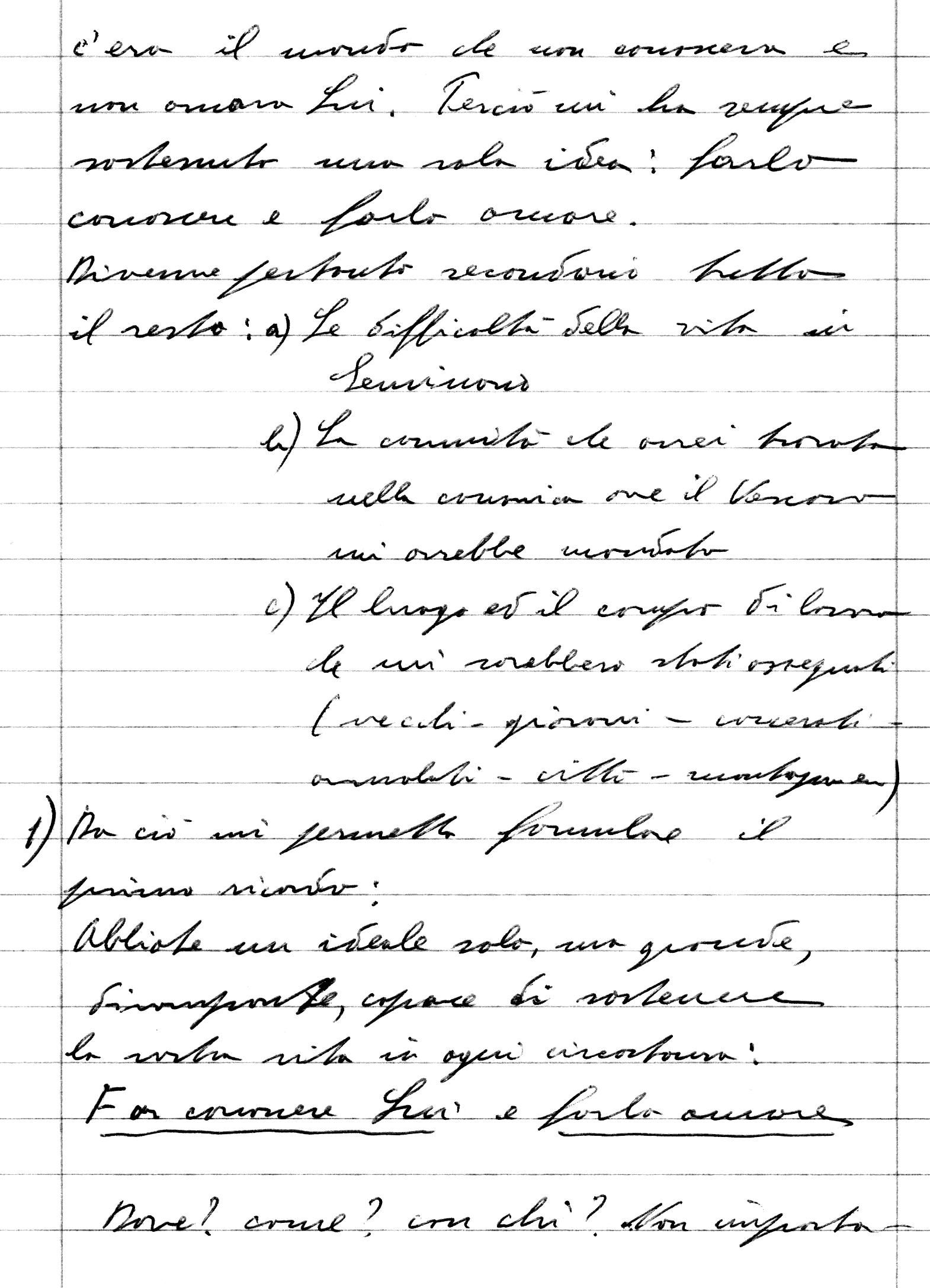 Le parole “Far conoscere Lui e farlo amare” sono sottolineate nel testo originale.